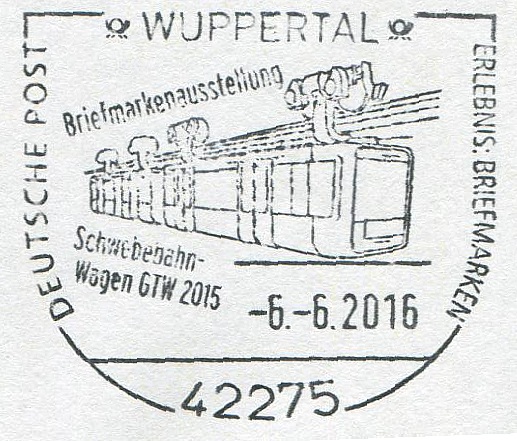 42275 Wuppertal | Briefmarkenausstellung Schwebebahn-Wagen GTW 2015 | 06.06.16 | |||||||||