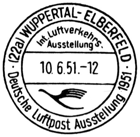 (22a) Wuppertal-Elberfeld | Deutsche Luftpost Ausstellung 1951 | 01.06.-17.06.51 | |||||||||