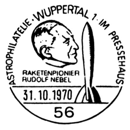56 Wuppertal 1 | Astrophilatelie im Pressehaus - Raketenpionier Rudolf Nebel | 31.10.70 | |||||||||