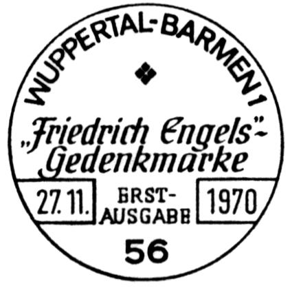 56 Wuppertal-Barmen 1 | Erstausgabe "Friedrich Engels"-Gedenkmarke | 27.11.70 | |||||||||